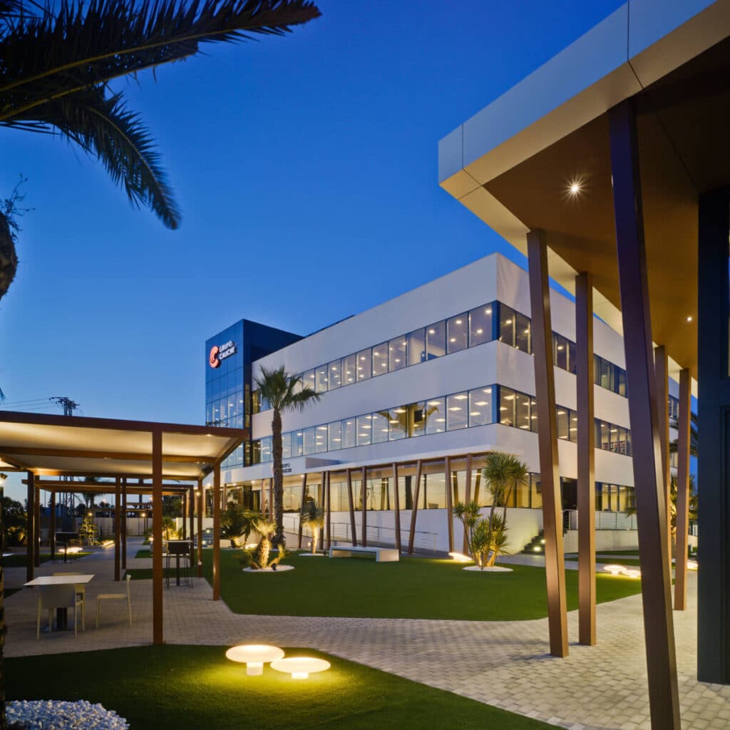 Tal y como requiere la propiedad, el complejo se convierte en un nuevo hito, como buque insignia de la marca, y por supuesto, siendo coherente con la filosofía Caliche. Además, debe ser un edificio versátil, adaptable al crecimiento de la empresa y autosuficiente.