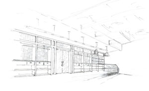 Se respeta esta idea de forma fiel, en el exterior, usando chapa minionda, alistonados de madera y vidrieras cuadriculadas, y, en el interior, revestimientos efecto pétreo y un mobiliario totalmente diseñado a medida, de madera natural, mármol y forja.