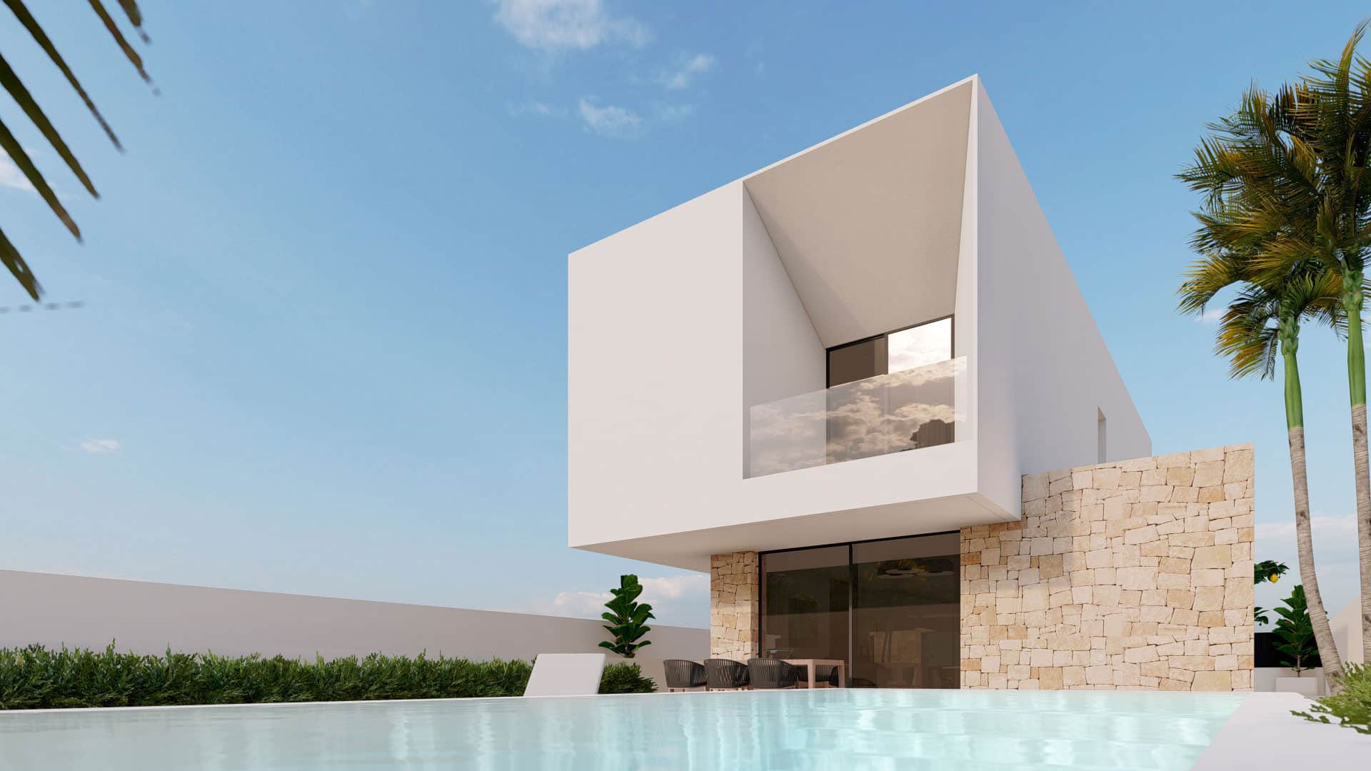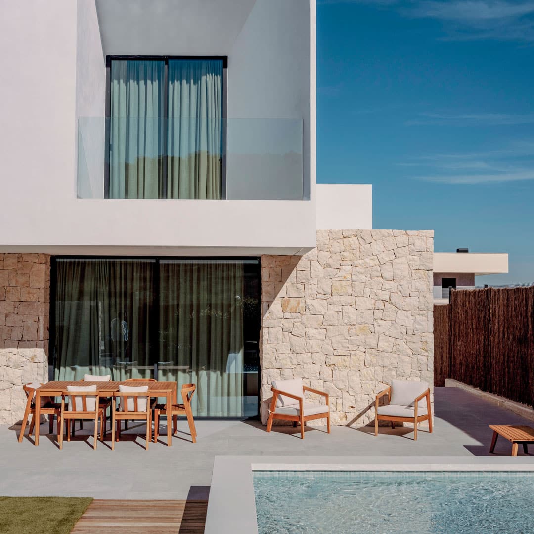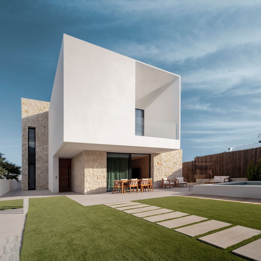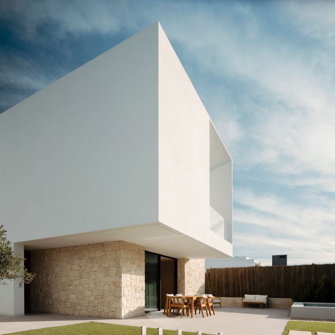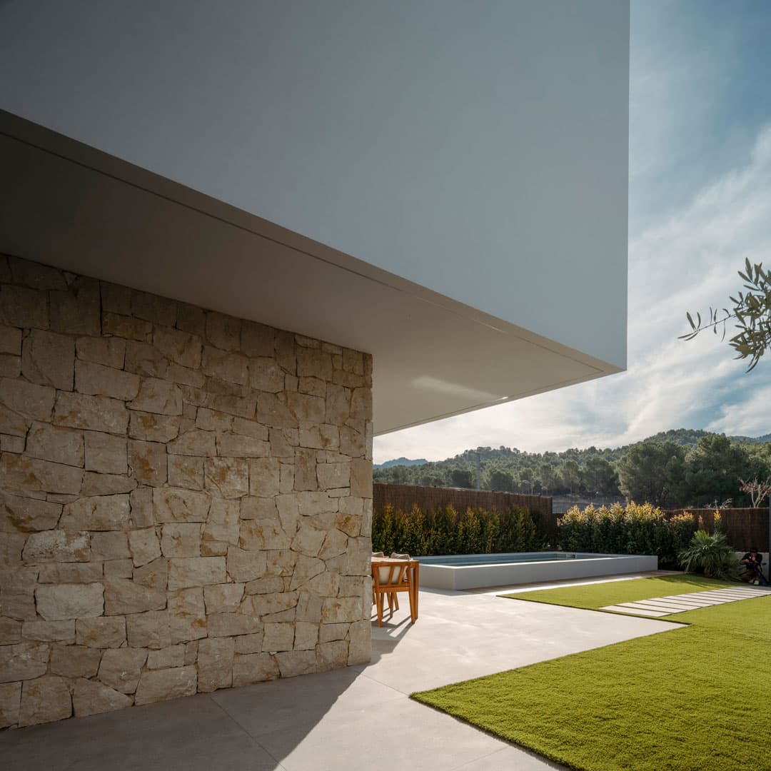 Su emplazamiento en el paisaje verde y ondulante del parque regional de El Valle y Carrascoy, en la urbanización de Montevida, confieren al proyecto de esta casa unas condiciones de partida de una enorme calidad arquitectónica. Una ubicación además favorecida por su posición en el extremo sur del conjunto residencial, que libera de parcelas colindantes su alzado principal y permite fugas visuales amplias y libres hacia un bosque de pinos infinito.